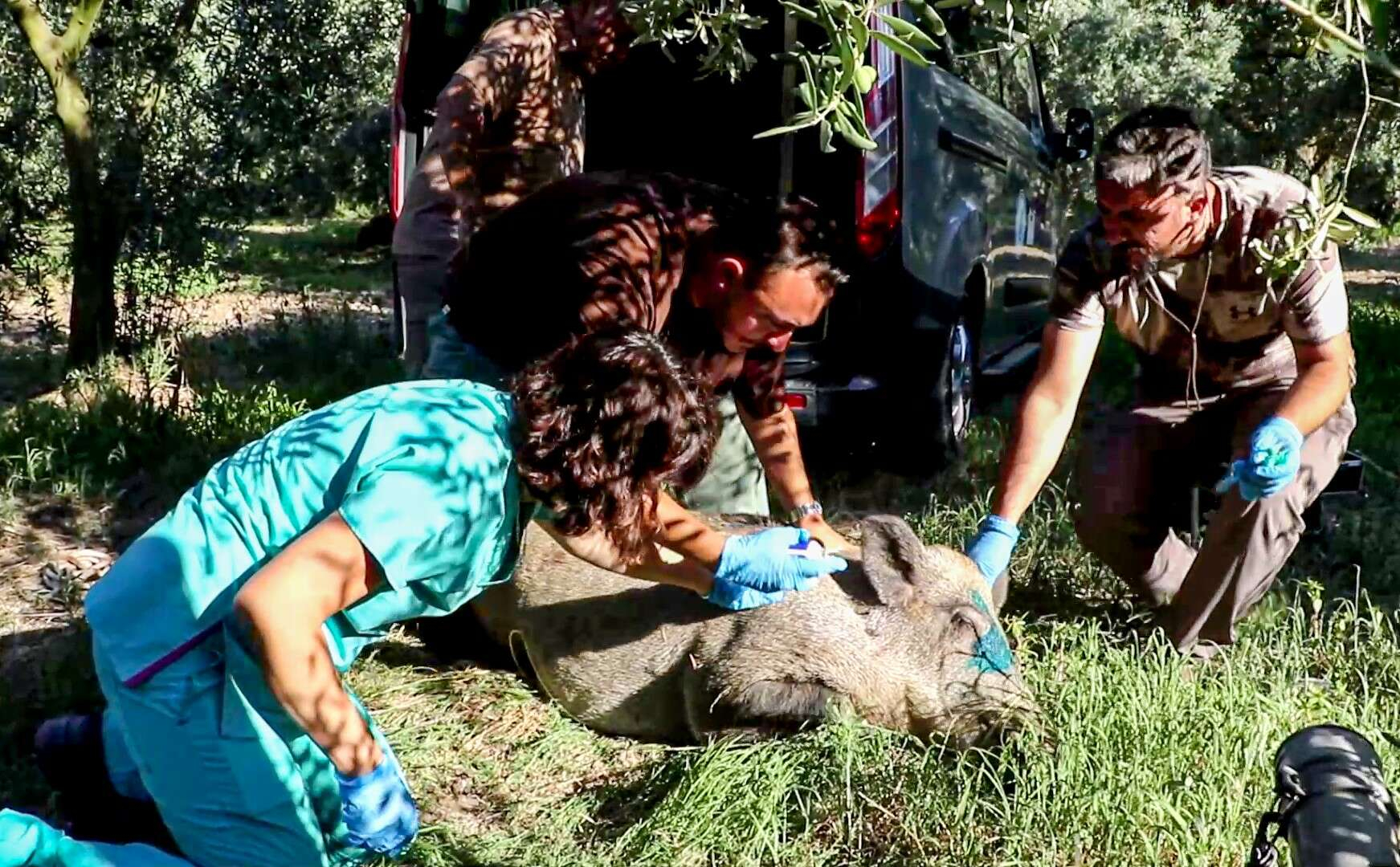 Veteriner Hekimleri Nihal Bilgici Yıldız ve Azizcan Sezer’in anne domuzu düştüğü kuyuda anestezi ile uyuttu. Güvenlik tedbirlerini alan İtfaiye ekiplerinin yardımıyla anne domuz düştüğü kuyudan traktörün de desteğiyle sağlıklı bir şekilde kurtarıldı.