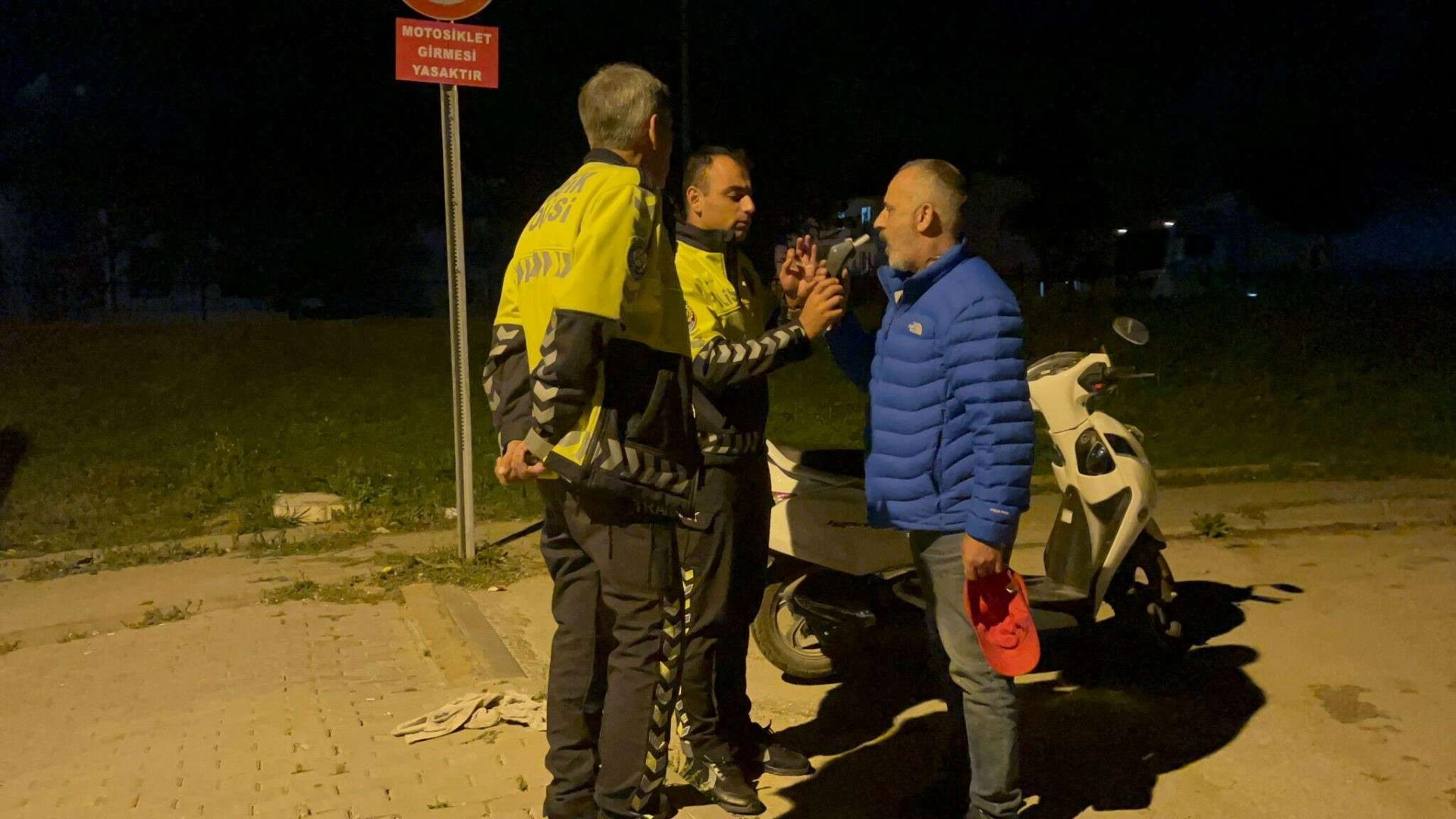 Yoğun ısrarlar sonucu ikna olan sürücü, alkol testini kabul etti. Polisin elinden aldığı alkolmetre cihazını kendisi üfleyen sürücünün 2,55 promil alkollü olduğu tespit edildi. Motosikletini alıp gitmek isteyen sürücü, ifadesi alınmak üzere karakola götürüldü.