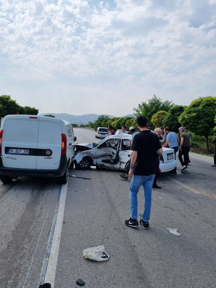 Bursa’nın Yenişehir ilçesinde seyir halindeki hafif ticari araç otomobile çarptı. Kaza sonucu otomobilde bulunan 2 kişi olay yerinde hayatını kaybederken, hafif ticari aracın sürücüsü ise yaralandı.