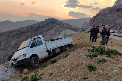 Orta refüj üzerinden geçen kamyonet, baraj kenarına düşüp duvara çarparak durdu. Duvar nedeniyle baraja düşmekten son anda kurtulan araçtaki sürücü, şans eseri yaralanmadan kurtuldu.