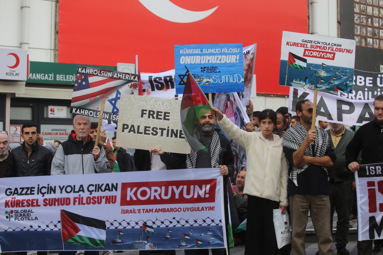 Ulu Camii önünden başlayan yürüyüş Şehreküstü Meydanı'nda sona erdi. Yürüyüş boyunca vatandaşlar, "Küresel Sümud Filosu onurumuzdur" yazılı pankartlar taşıyarak "Çok yaşa Filistin" sloganları attı.