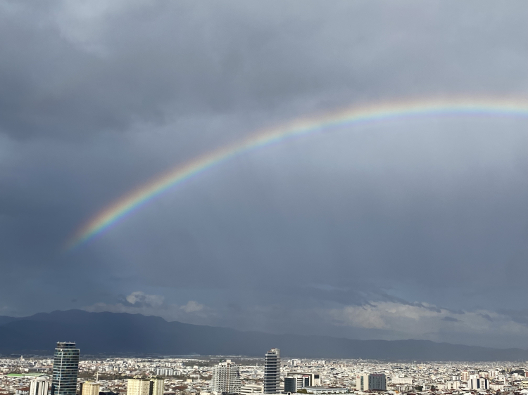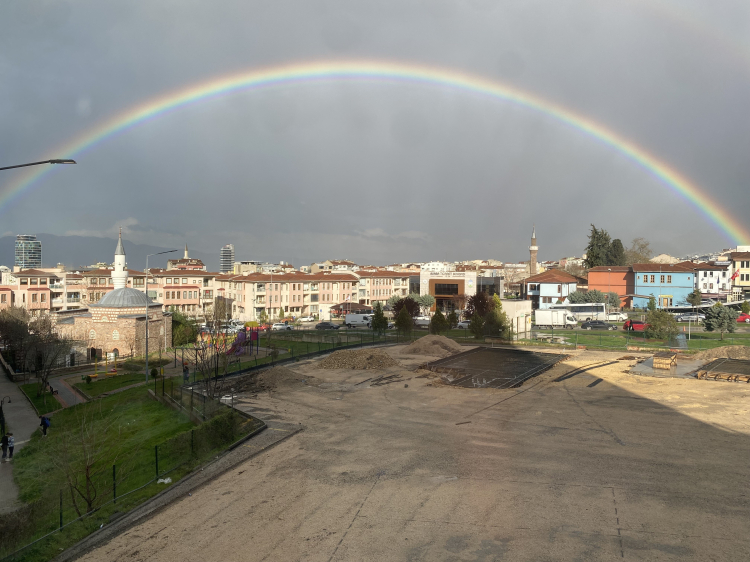 Öğleden sonra etkisini gösteren yağmur bulutlarının dağılmaya başlamasıyla birlikte gökyüzünde beliren gökkuşağı, vatandaşların ilgisini çekti. Şehrin birçok noktasından görülebilen gökkuşağı, özellikle yüksek binalar ve Uludağ silüetiyle birlikte kartpostallık görüntüler oluşturdu. Kısa süreliğine görülen doğa olayı, fotoğraf çekmek isteyen vatandaşlar tarafından cep telefonlarıyla görüntülendi.