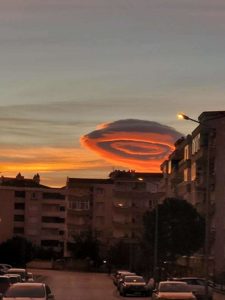 Bursa'da sabahın ilk ışıklarında UFO görünümlü bulutu gören vatandaşlar şaşkınlıklarını gizleyemedi.