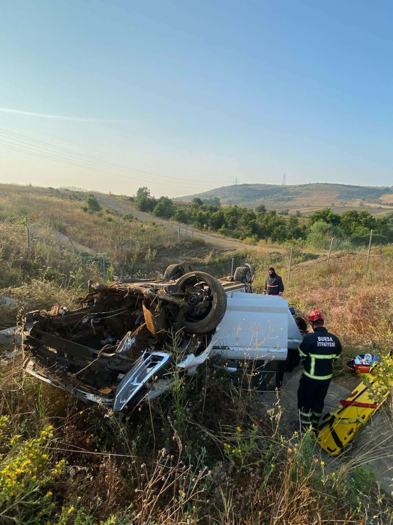 Bursa'da gurbetçi ailenin aracı şarampole yuvarlandı!