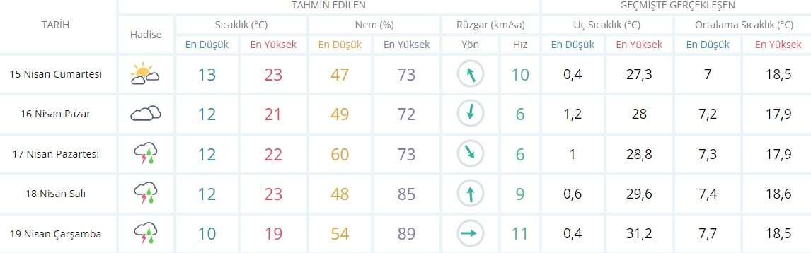 BURSA İÇİN 5 GÜNLÜK TAHMİN