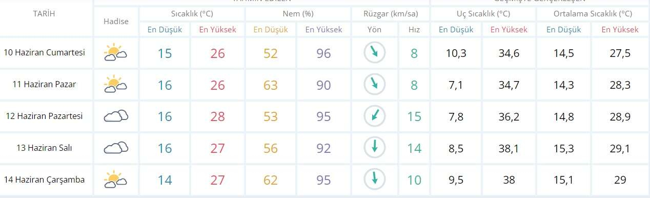 BURSA İÇİN 5 GÜNLÜK TAHMİN