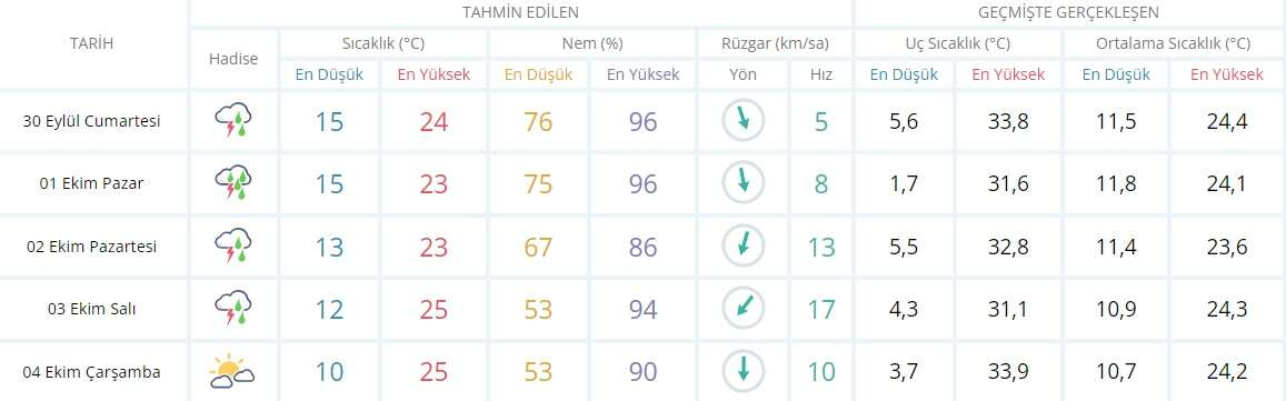BURSA İÇİN 5 GÜNLÜK TAHMİN