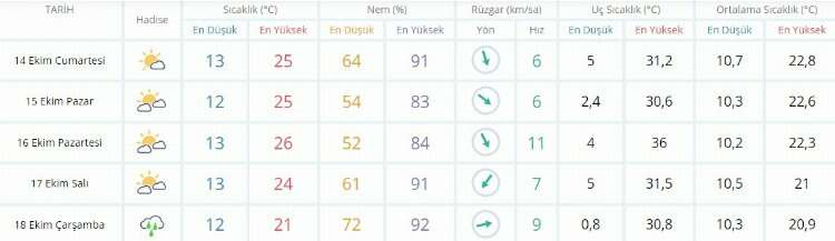 BURSA İÇİN 5 GÜNLÜK TAHMİN
