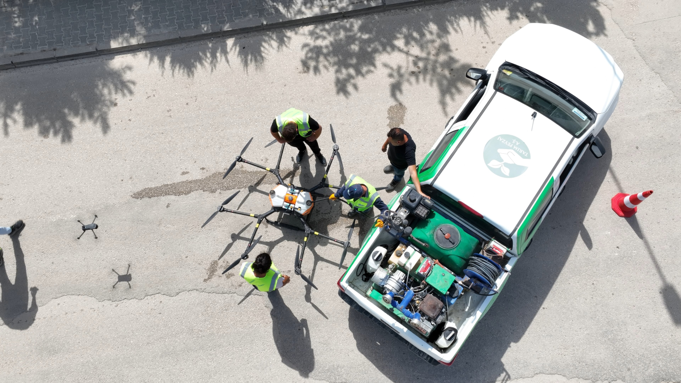 Bursa Büyükşehir Belediyesi Tarım Peyzaj A.Ş yaz aylarında artan başta sivrisinekler olmak üzere haşerelere karşı dronla mücadele başlattı. Araçların giremediği dere yatakları, sulak ve otluk alanlar başta olmak üzere birçok noktada kullanılan ilaçlama dronlarının sayısının artması planlanıyor. Tarım Peyzaj A.Ş, dronları sadece haşere ilaçlamada değil, ilerleyen zamanlarda mahsul yetişen tarla ve bahçelerde de kullanmayı hedefliyor. Nilüfer ilçesine bağlı Kayapa Mahallesi'nden geçen derede haşerelere karşı dronla ilaçlama yapıldı.