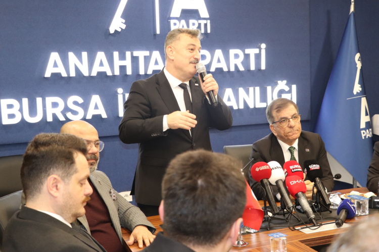 Anahtar Parti Bursa İl teşkilatı bayramlaşma programı yoğun katılımla gerçekleşti. İl Başkanı Fikret Aslan özelleştirilmesi gündeme gelen hastane alanları ile ilgili merkezi hükümete yüklenirken Genel Başkan Yardımcısı Sedat Yalçın, İran'daki savaş ve komşuluk ilişkilerini gündeme aldı.