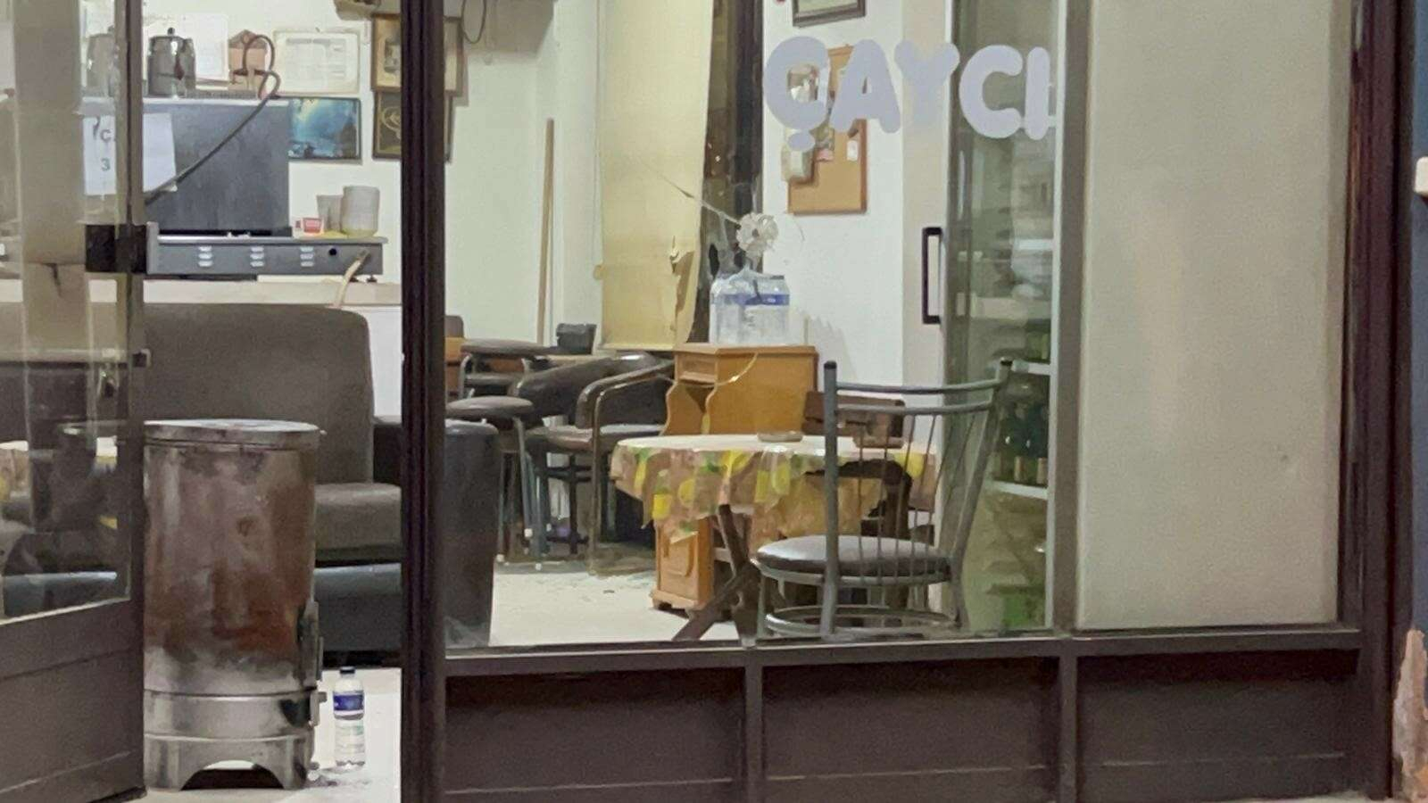 İş yerinin camlarına isabet eden mermiler sonucu, camları kırıldı.