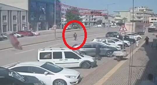 Bursa’da bir otomobil sürücüsü aracıyla geri manevra yaparak süratle ilerleyen o esnada karşıya geçen vatandaşı fark etmedi.