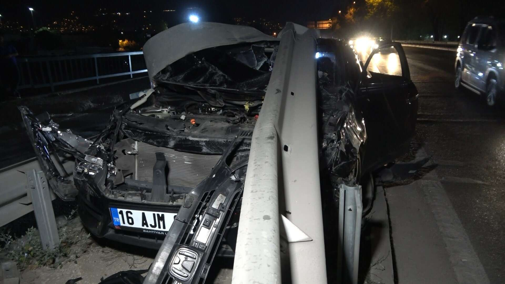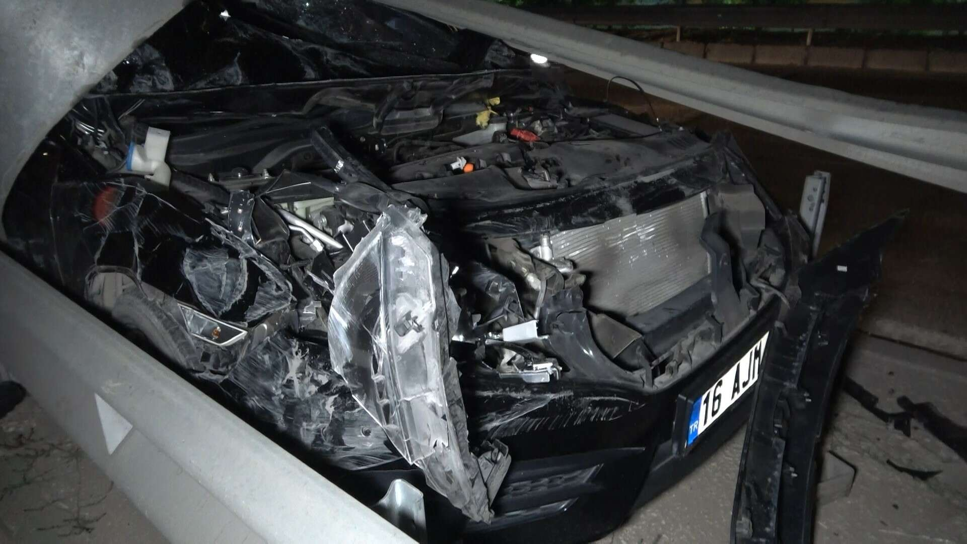 Bursa’da otomobiliyle orta refüje çarpan sürücü aracını bırakıp olay yerinden kaçtı.