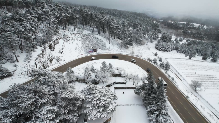 Kış mevsiminin etkisiyle beyaza bürünen ormanlık alanlar arasında ilerleyen yollar, havadan çekilen görüntülerde kartpostallık kareler oluşturdu. Özellikle virajların oluşturduğu simetrik desenler ve karla kaplı ağaçlar, Uludağ'ın doğal güzelliğini bir kez daha gözler önüne serdi.