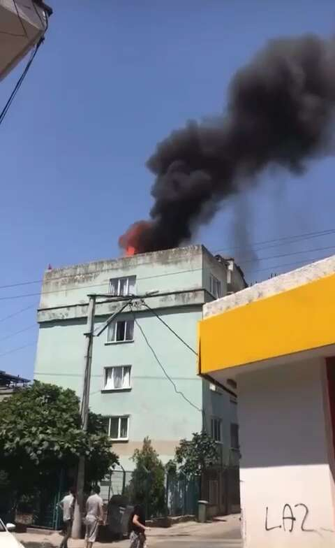 Bursa'da 4 katlı bir binanın çatı katındaki kuş kümesinde yangın çıktı. Kısa sürede büyüyen alevler çatıyı sararken, yangın itfaiye ekiplerince söndürüldü.