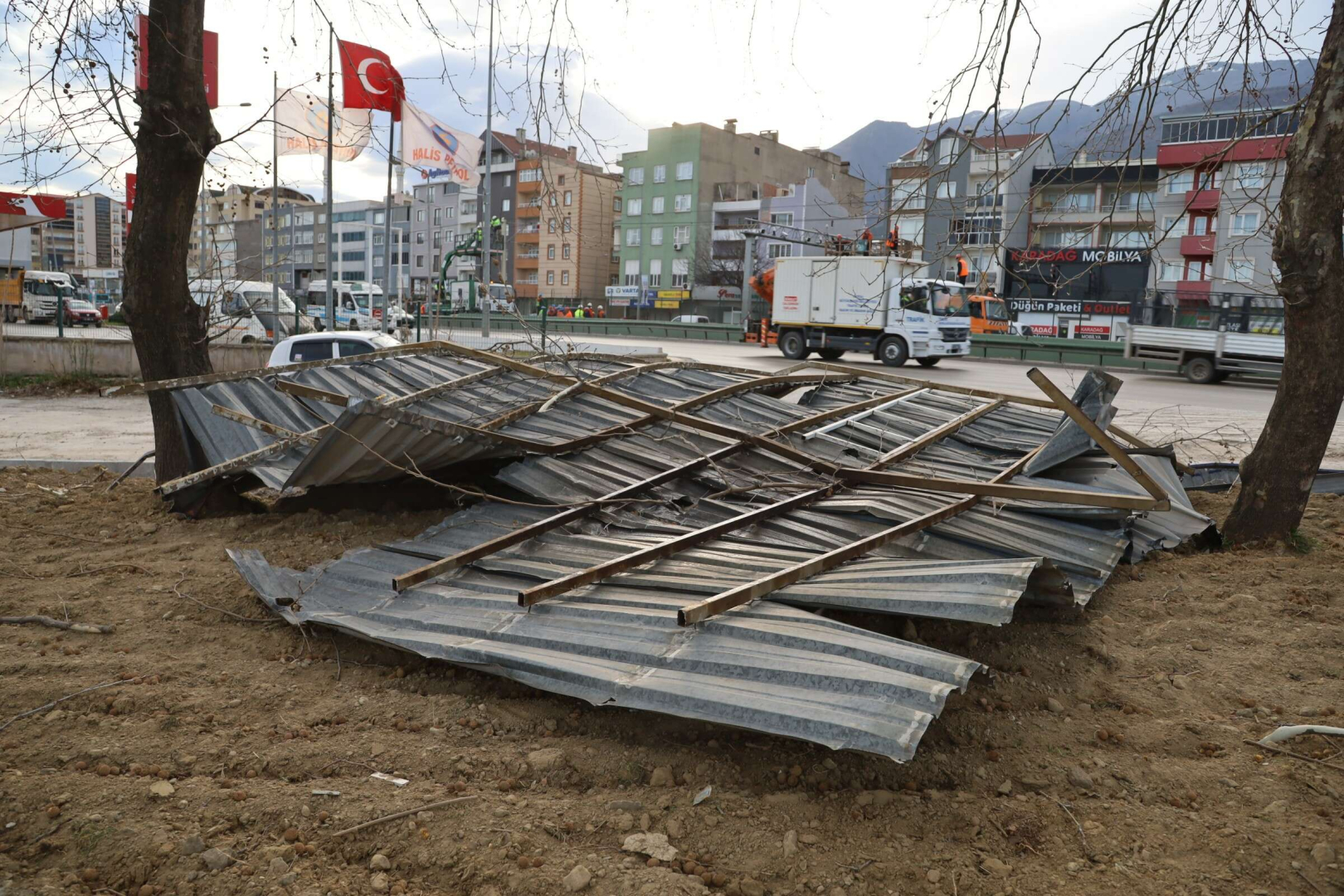 Bursa’da gece saatlerinde hızı zaman zaman 75 kilometreyi aşan lodos, yaşamı olumsuz etkiledi. Yıldırım ilçesi Hacivat Mahallesi’nde Ankara yolu kenarındaki 3 katlı binanın çatısı saat 01.57’de ‘büyük bir gürültüyle savrulup’ önce yola, ardından da metro hattının üzerine düştü.