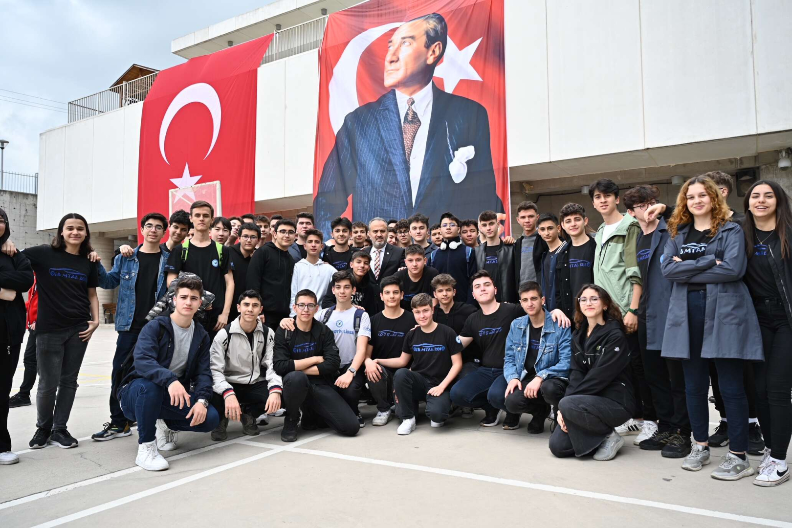 Türkiye’nin 60 yıllık hayalinin Togg ile gerçek olduğunu hatırlatan Büyükşehir Belediye Başkanı Alinur Aktaş, “Ne kadar gururlansak az. 60 yıllık hayalimiz Togg artık sahalarda, yollarda geziyor. Bu lisemiz ülkemizin önemli liselerinden biri. Geçen hafta 6. OTOFEST’e gelmiştik. Çocuklarımızın heyecanına ortak olduk. Bana Togg beklediklerini ifade ettiler. Ben de Büyükşehir’e alacağımız Togg’u ilk olarak buraya getireceğimin sözünü vermiştim. Aracımız geldi ve evlatlarımızla buluşturduk. Geleceğin otomotiv markalarının yöneticisi olacak, onun fikir altyapısını oluşturacak, onunla alakalı önemli süreçleri sevk ve idare edecek olan gençlerimizin heyecanına şahit olduk. Onlara kolaylıklar ve başarılar diliyorum. Gerçekten yüksek teknolojinin çok konuşulduğu, ülkemiz için olmazsa olmazlardan olan ortam içinde gençlerimizin bu heyecanına şahit olmak büyük mutluluk” diye konuştu.