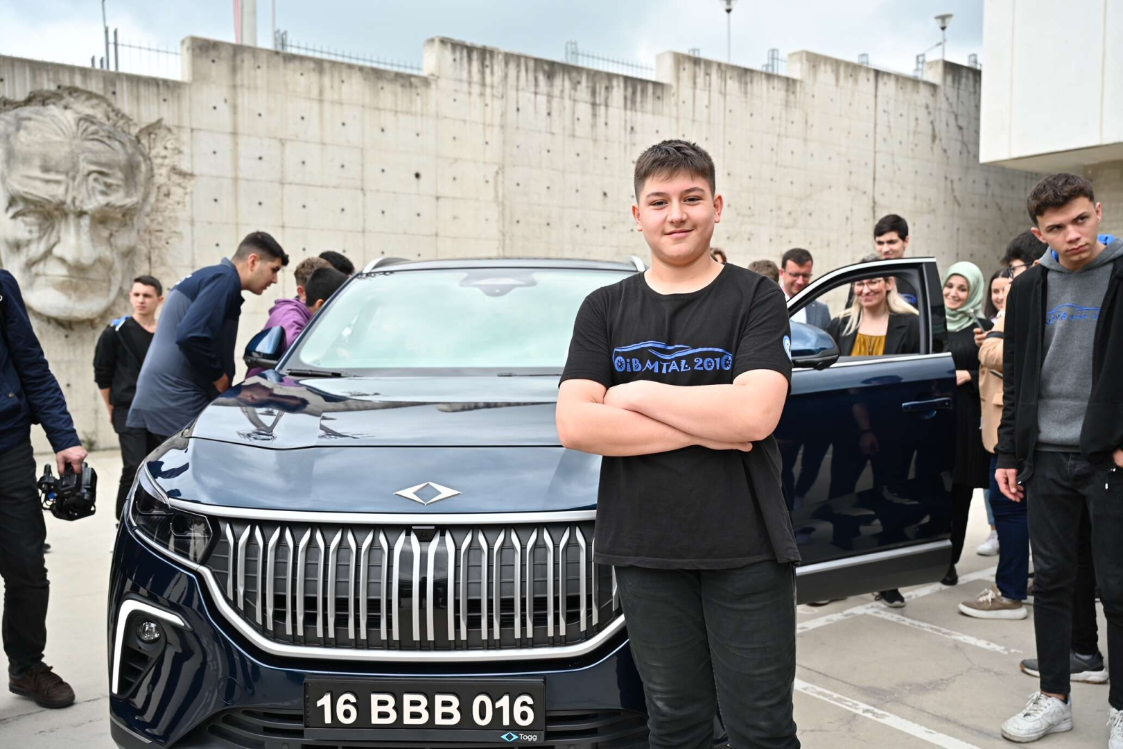 Okulun atölyesinde geçtiğimiz yıl şarj süresi 4 saat olan ve tam şarjla 60 kilometre yol kat eden ‘Bolat’ adını verdikleri bir elektrikli otomobil üreten liseli gençler, Togg’u büyük bir hayranlıkla inceledi. Okul bahçesi bir anda adeta miting alanına dönerken, geleceğin otomotivcileri, bagajından iç donanımına kadar Togg’u titizlikle inceledi.