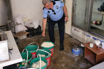 Bursa’da merdiven altı peynir ve süt ürünleri imal eden iş yerine baskın yapan Osmangazi Belediyesi zabıta ekipleri, gördükleri manzara karşısında şaşkına döndü. Kovalarda imal edilen peynirlere el konulurken, ruhsatsız işyeri de mühürlendi.