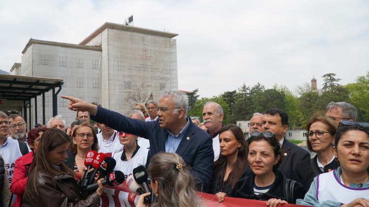 Resmi Gazete’de yayımlanan kararlarla Bursa’nın en köklü sağlık tesislerinin özelleştirme kapsamına alınması, kentin tüm dinamiklerini harekete geçirdi. Bursa Tabip Odası, akademik odalar, DİSK, KESK ve çok sayıda sağlık sendikasıyla birlikte Ali Osman Sönmez Onkoloji Hastanesi önünde tarihi bir basın açıklaması gerçekleştirdi. "Hastane Yerleri Satılamaz!" pankartı açan bileşenler, sağlık hakkının ticari bir meta haline getirilmesine izin vermeyeceklerini haykırdı.