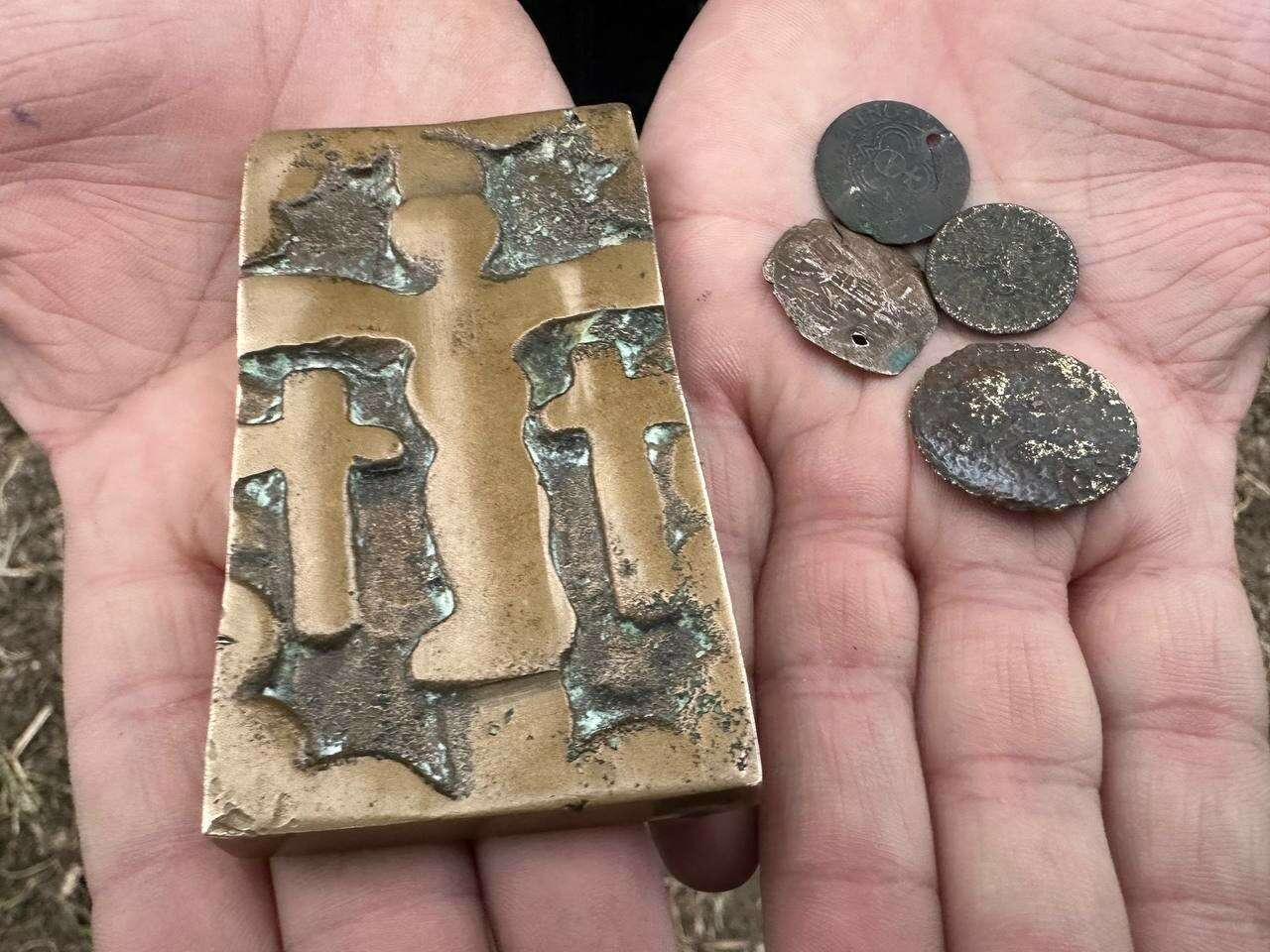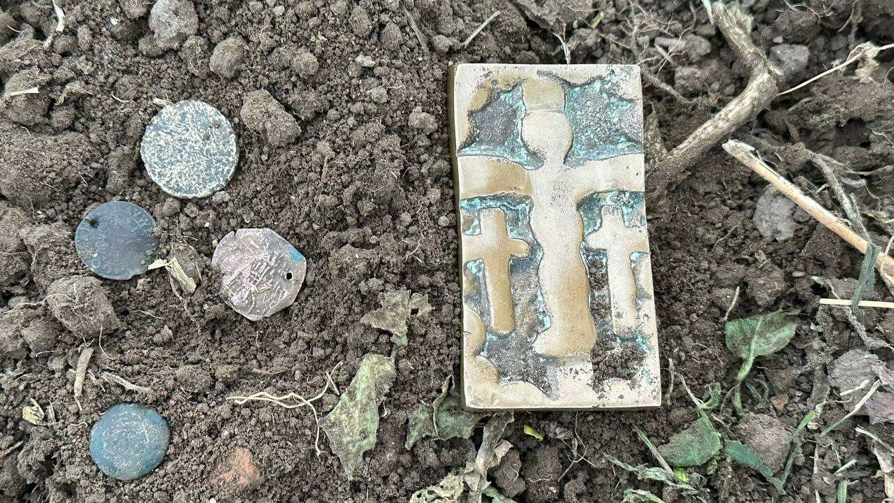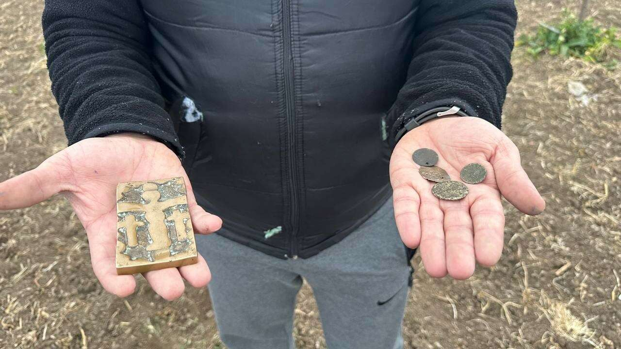 4 medeniyete başşehirlik yapmış Unesco’ya aday Bursa’nın İznik ilçesinde kendine ait şeftali tarlasında budama çalışması yapan Özkan Yılmaz, 4 adet sikke ve üzerinde haç ve çocuk kabartmaları bulunan tablete benzer tarihi bir parça buldu.