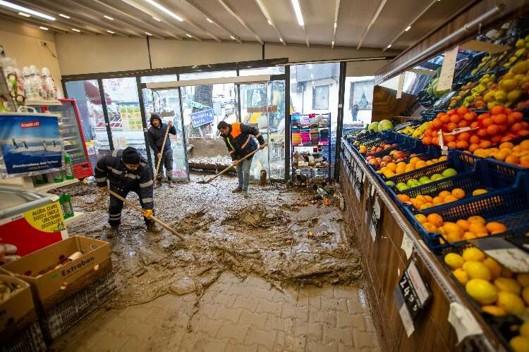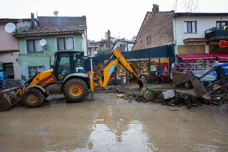Büyükşehir Belediyesi’ne bağlı BUSKİ, Ulaşım, Park ve Bahçeler, Tarım ve Peyzaj A.Ş, itfaiye ve zabıta birimlerinden 410 personel ve 140 araçla, olayın ilk anlarından itibaren bölgede adeta seferberlik başlatıldı. Sel sularının taşıdığı çamurlarla kaplanan yollar iş makineleriyle temizlenirken, ev ve iş yerlerini basan sular da BUSKİ ekipleri tarafından tahliye ediliyor.