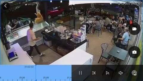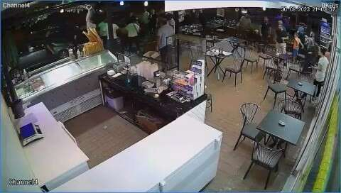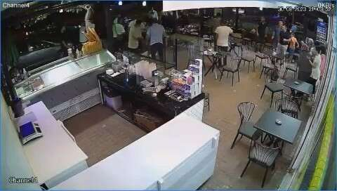 Çıkan kavga sonrası olaya tanık olan bir işletmenin müşterileri işletmenin iç kısmına sığınırken o anlar güvenlik kamerasına saniye saniye yansıdı.