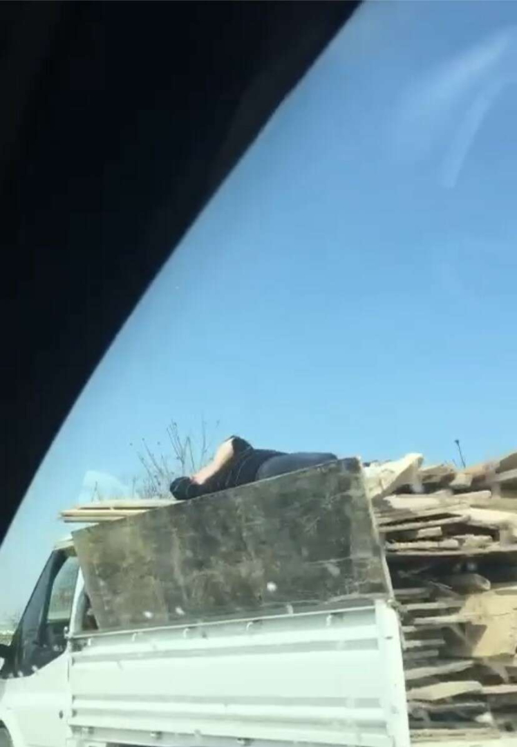 Edinilen bilgiye göre, kimliği belirsiz bir kişi; kendi canını hiçe sayarak kamyonetin arkasında bulunan tahtaların üzerine uzandı. Bir süre böyle giden tahta yüklü kamyonet, daha sonra ara sokaklara girerek gözden kayboldu.