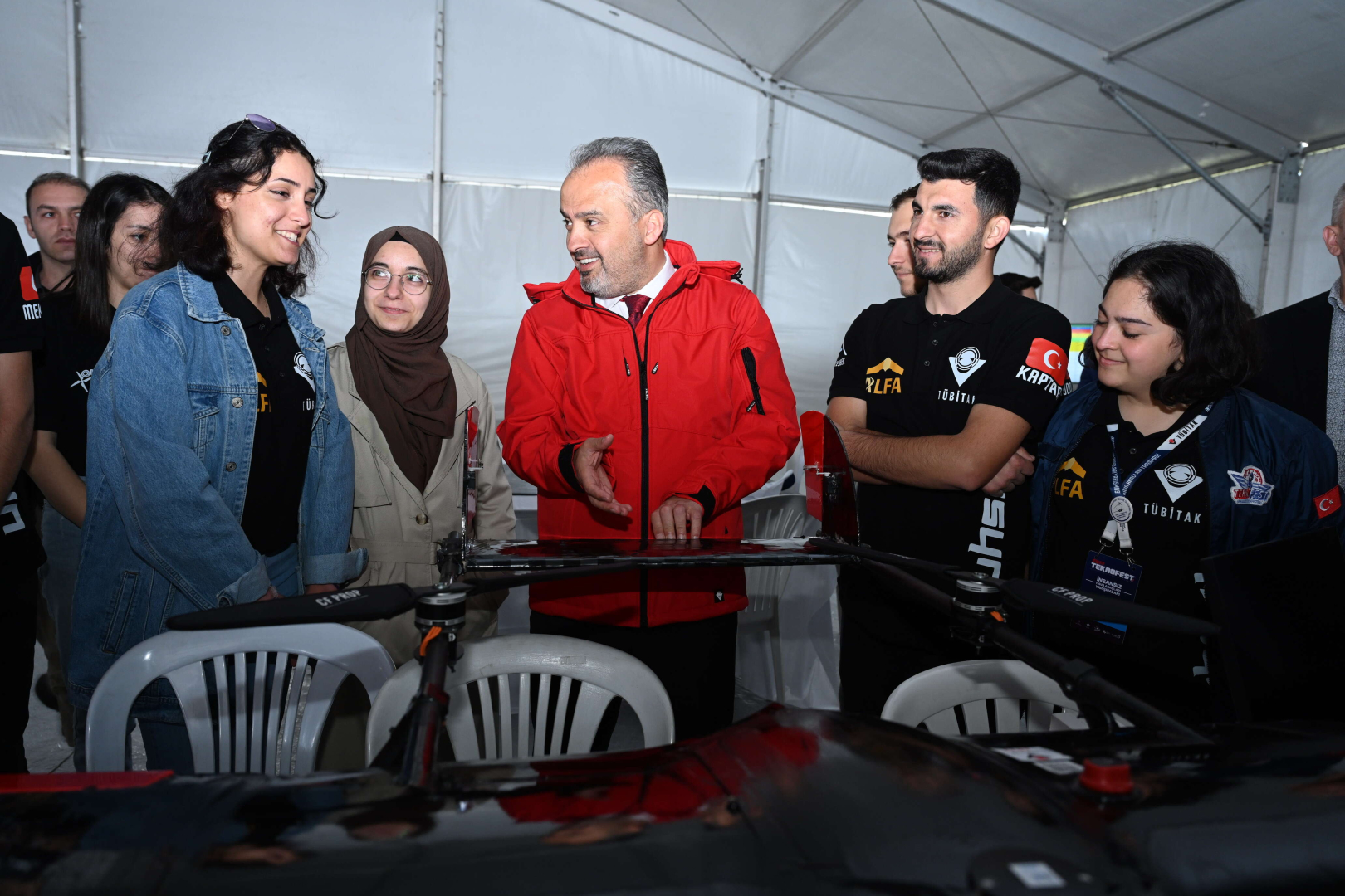 Bursa Büyükşehir Belediye Başkanı Alinur Aktaş, Yunuseli Havaalanında teknolojide yarışan gençleri atölyelerinde ziyaret etti. Çalışmaları hakkında gençlerden bilgi alan ve onlara çeşitli hediyeler veren Başkan Aktaş, “Milli teknoloji hamlesi kapsamında yapılan çalışmalar ile ülkemizde her alanda yerli ve milli üretim artıyor. İHA teknolojisinde ise ülkemiz, dünyadaki en başarılı birkaç ülkeden biri hâline geldi. Bu başarı, ülkemizin gururu olduğu kadar aynı zamanda bizlerin sorumluluğunu da arttırıyor. Bu yıl yarışmaya geçen yıla oranla yüzde 86 artışla 1228 takımın başvurması gençlerimizin de teknolojiye olan ilgisini gösteriyor. Tüm yarışmacılarımızı yürekten kutluyorum. Bursa Büyükşehir Belediyesi olarak bu tür etkinlikleri hep destekledik, desteklemeye de devam edeceğiz. Zira yaşadığımız çağı yakalamak için bilim temelli bir bakış açısı geliştirmemiz gerektiğini düşünüyorum. Geçmişimizden güç alıp geleceğimizi, çağın gereklerine göre şekillendirmeliyiz” diye konuştu.