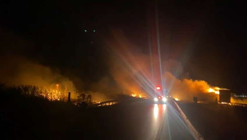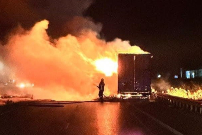 Seyir halindeki metal yüklü TIR'ın dorsesi birden yanmaya başladı. Hızla büyüyen alevler TIR'ın dorsesini kaplarken, sürücü TIR'ı yol kenarına çekti. Büyüyen alevler yol kenarındaki çalılıklara da sıçradı.