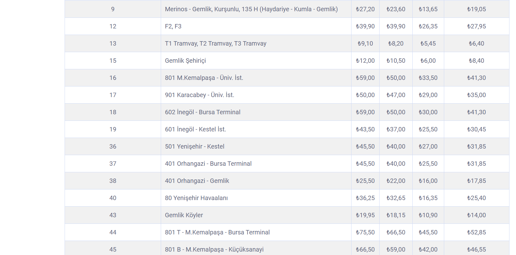 OTOBÜS UZUN HAT ise 9.40 TL'den 13 TL'ye,