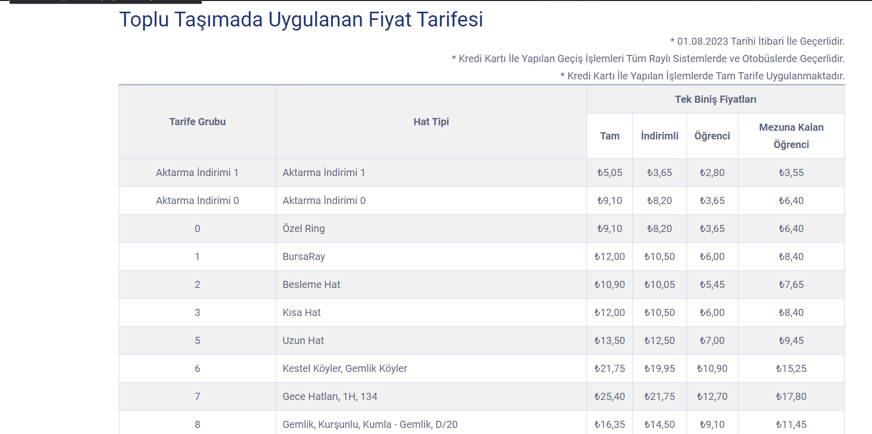 Bursa'da 1 Ağustos 2023 (Yarın) tarihinden itibaren geçerli olmak üzere, metro tam biniş 8.15 liradan 12 liraya yükseldi.