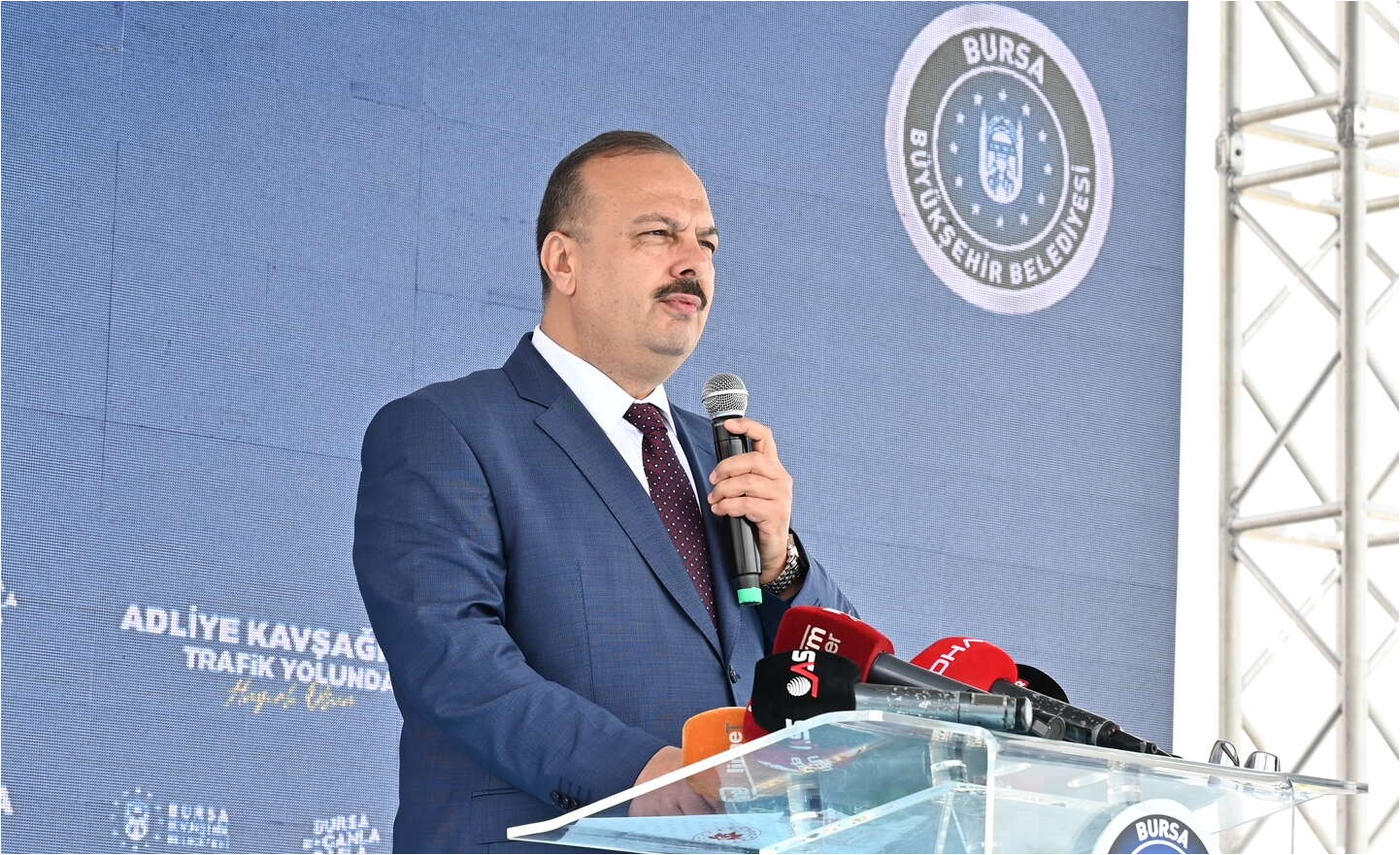 Bursa Büyükşehir Belediye Başkanı Alinur Aktaş, hızla büyüyen gelişen Bursa’da nüfusun her yıl ortalama 50 bin, araç sayısının 30-40 bin arttığını, yapılan araştırmalara göre 13-14 yıl sonra nüfusun 4 milyona ulaşacağının öngörüldüğünü hatırlattı. Bu nedenle Bursa’nın birinci öncelikli konusunun ulaşım olduğunun altını çizen Başkan Aktaş, “Biz de kavşaklarda uyguladığımız akıllı dokunuşlar, yeni yol yapımları, yol genişletmeleri, asfaltlama, köprü yapımı ve toplu ulaşımda iyileştirmelerle Bursa'nın ulaşım sıkıntısını rahatlatıyoruz. Bu bölge de özellikle Bölge Adliye Mahkemesi’nin gelişiyle yoğun sirkülasyonun olduğu kritik noktalardan biri oldu. Emniyet Müdürlüğü, müftülük, bizim ulaşım ve fen işleri şantiyemiz, GUHEM, Bilim Teknoloji Merkezi ve hemen yanı başındaki fuar alanı ile trafiğin oldukça yoğun olduğu bir nokta. Dolayısıyla bu noktada bir kavşak kaçınılmaz bir gerçekti. Yaklaşık 165 milyon TL’ye mal olan Adliye Kavşağı Bursa’mıza hayırlı olsun” dedi.