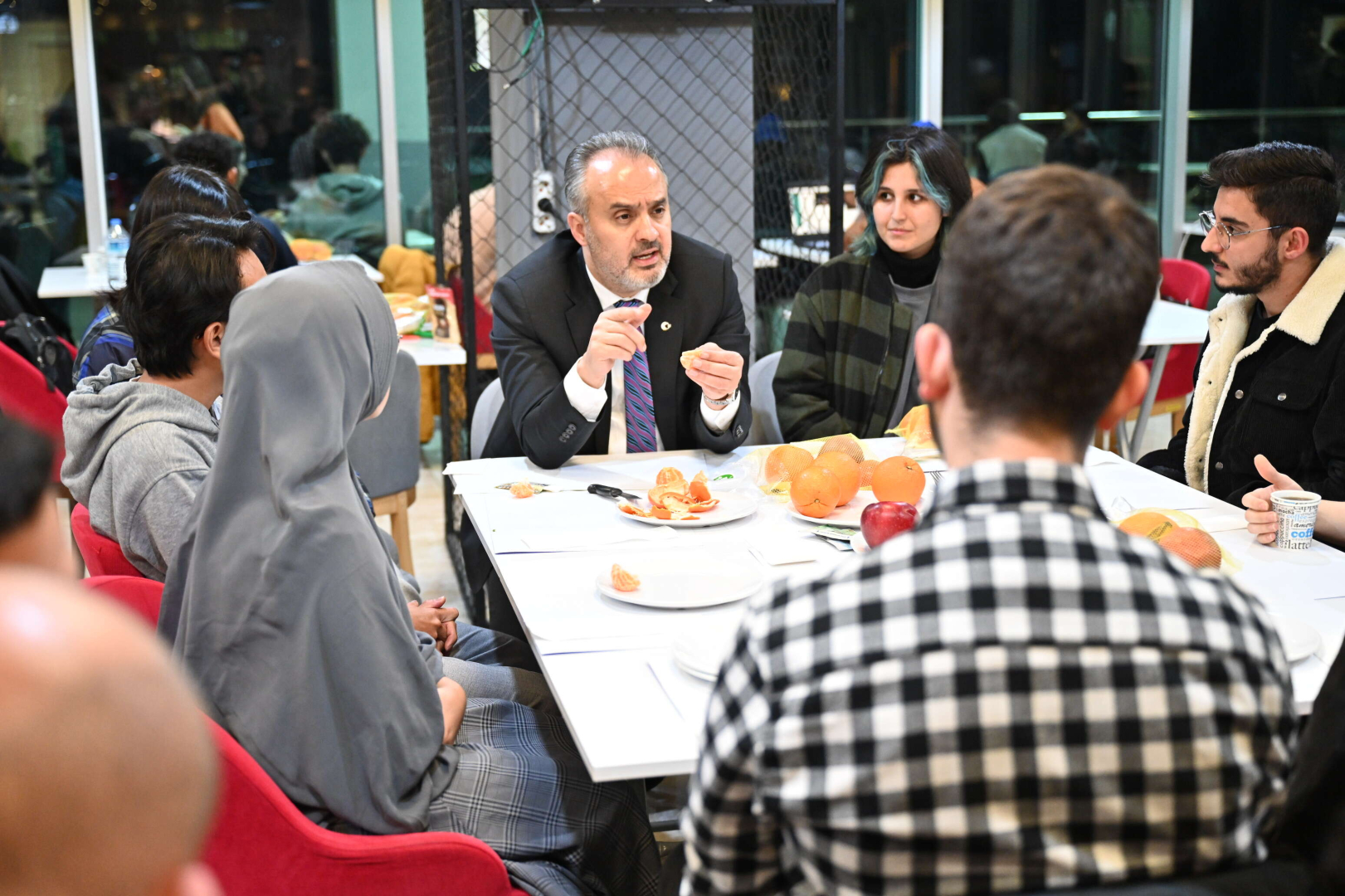 Bursa Büyükşehir Belediye Başkanı Alinur Aktaş, kendisinin de bu sıralardan geçtiğini hatırlatarak, sınav haftalarının üniversiteli gençler için stresli bir dönem olduğunu söyledi. Hizmete açtıkları kütüphaneler, gençlik merkezleri ve millet kıraathaneleri ile gençlere ders çalışabilmeleri için konforlu ortamlar hazırladıklarını dile getiren Başkan Aktaş, “Özellikle bu sınav döneminde gençlerimizin grip salgınına karşı da dirençli olabilmeleri için onlara meyve ikram ettik. Uygun fiyatlı ulaşım imkanlarından su faturalarında indirime, moral akşamlarından kültürel gezilere kadar her zaman gençlerimizin yanındayız. Tüm genç kardeşlerimize sınavlarda başarılar diliyoruz. Amacımız, onlara yaşadıkları Bursa’yı daha güzel kılabilmek, eğitimlerini daha sağlıklı ve kaliteli ortamda geçirmelerini sağlamak. Bütün yaptığımız çalışmalar bunun için” dedi.