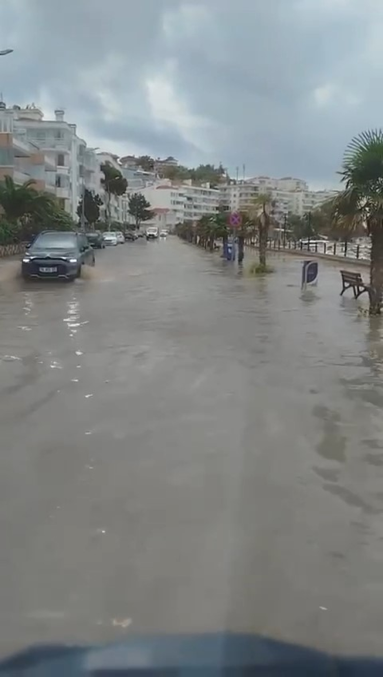 Bursa'nın Mudanya ilçesinde bir anda etkili olan yağmur, Mudanya Sahil yolunu göle çevirdi. Otomobillerin geçerken zorlandığı anlar anbean amatör kameraya yansıdı.