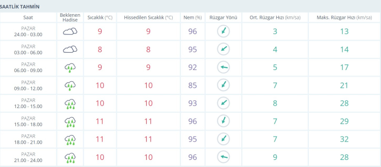 Nem Oranı Zirvede: Gün boyu %85 ile %96 arasında seyreden nem oranı, hissedilen sıcaklığın termometre değerleriyle aynı kalmasına neden olacak.