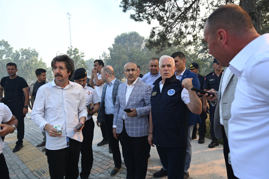Yangın birdenbire oraya ulaştı. Yurtlar var. Yurtların boşaltılması söz konusu, talimatlar da verildi. Yurtlar boşaltılacak, tedbirlerimizi alıyoruz. Başta insan olmak üzere hiçbir canlıya zarar gelmemesini arzu ediyoruz. Bütün ekiplerimize yürekten teşekkür ediyorum. Ateşin arasında kalan arkadaşlarımız da var. Ona rağmen çalışmalar aralıksız sürüyor. Hepsi çok yoğun çalışıyorlar” diye konuştu.