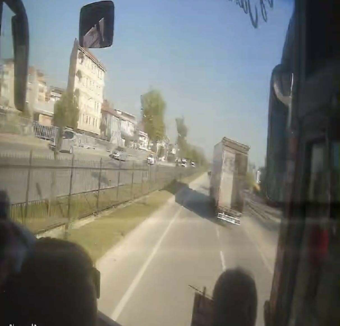 Kaza anı otobüsün kamerasına saniye saniye yansıdı. Polis kazayla ilgili soruşturma başlattı.