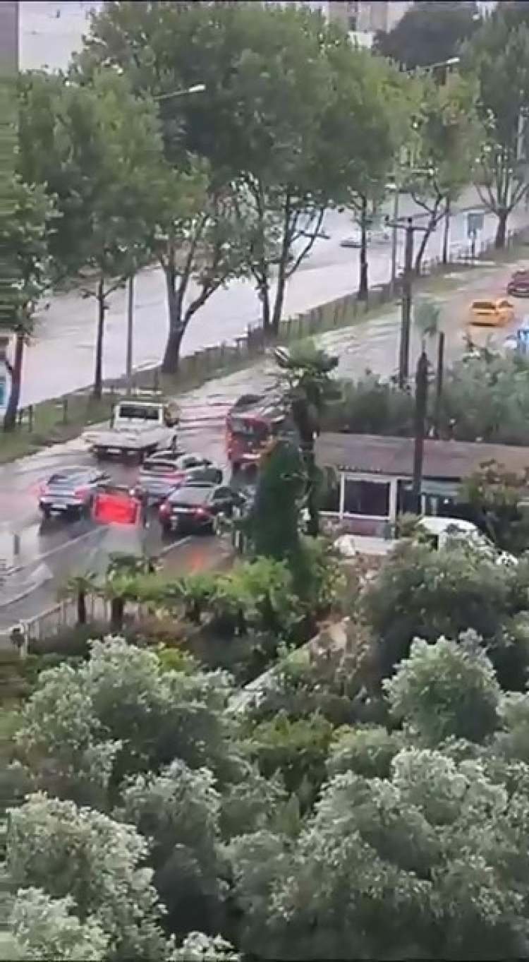 Güzelyalı Mahallesi'nde de ara sokakların bir çoğu dereye dönerken Bursa-Mudanya Caddesi üzerinde biriken su trafiğin tıkanmasına sebep oldu.