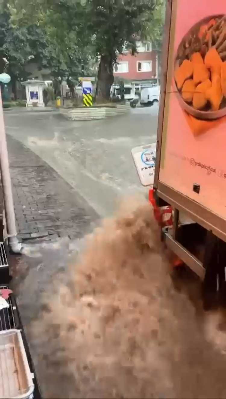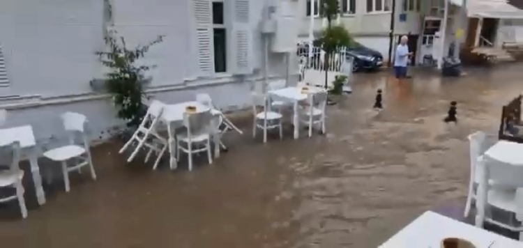 Bursa'nın Mudanya ilçesinde sabah saatlerinde etkili olan sağanak yağmur caddeleri dereye çevirdi.