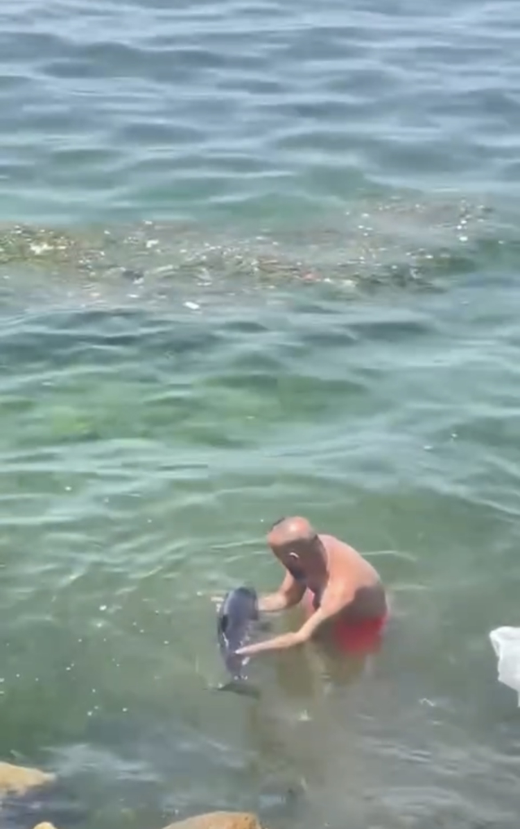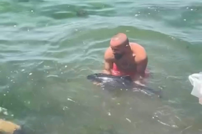Bursa'nın Kurşunlu sahilinde ağ atan balıkçıların ağına yavru yunus balığı takıldı. Çırpınan yunusu fark eden balıkçılardan biri hemen suya atlayıp, yunus balığını kurtarmak için seferber oldu. Dakikalarca uğraşan balıkçı, yunus balığını ağdan kurtarıp tekrar denize bıraktı. Yunus balığının kurtarılma anı ise kameraya yansıdı.