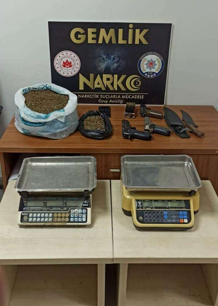 Bursa İl Emniyet Müdürlüğü'ne bağlı Gemlik İlçe Emniyet Müdürlüğü ekipleri şüpheli bir şahsın evinde yaptığı aramada 2 kilo 15 gram esrar ele geçirdi.