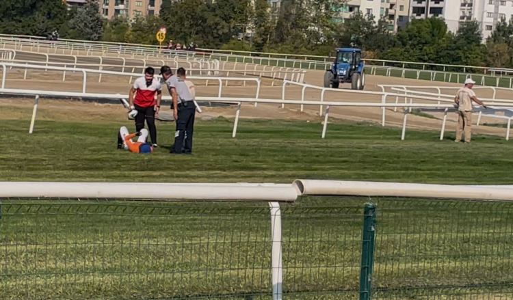 Altıncı koşuyu iki numaralı Pencsir atıyla tamamlayan jokey Mehmet Akyavuz, yarış bittikten hemen sonra atının hafif tökezlemesi sonucu bir anda dengesini kaybederek düştü.