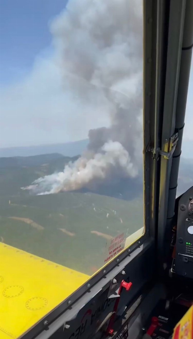 Orhaneli ilçesi Topuk Mahallesi mevkiinde bulunan ormanlık alanda başlayan ve kısa süre içerisinde büyüyen yangın, Orman Bölge Müdürlüğü’ne ait uçak ile havadan görüntülendi.