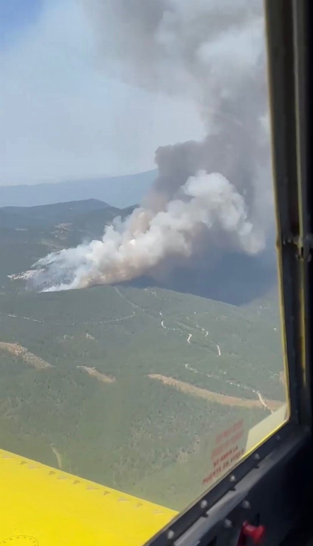 Bursa’nın Orhaneli ilçesinde ormanlık alanda başlayan ve kısa sürede büyüyen yangın havadan görüntülendi.