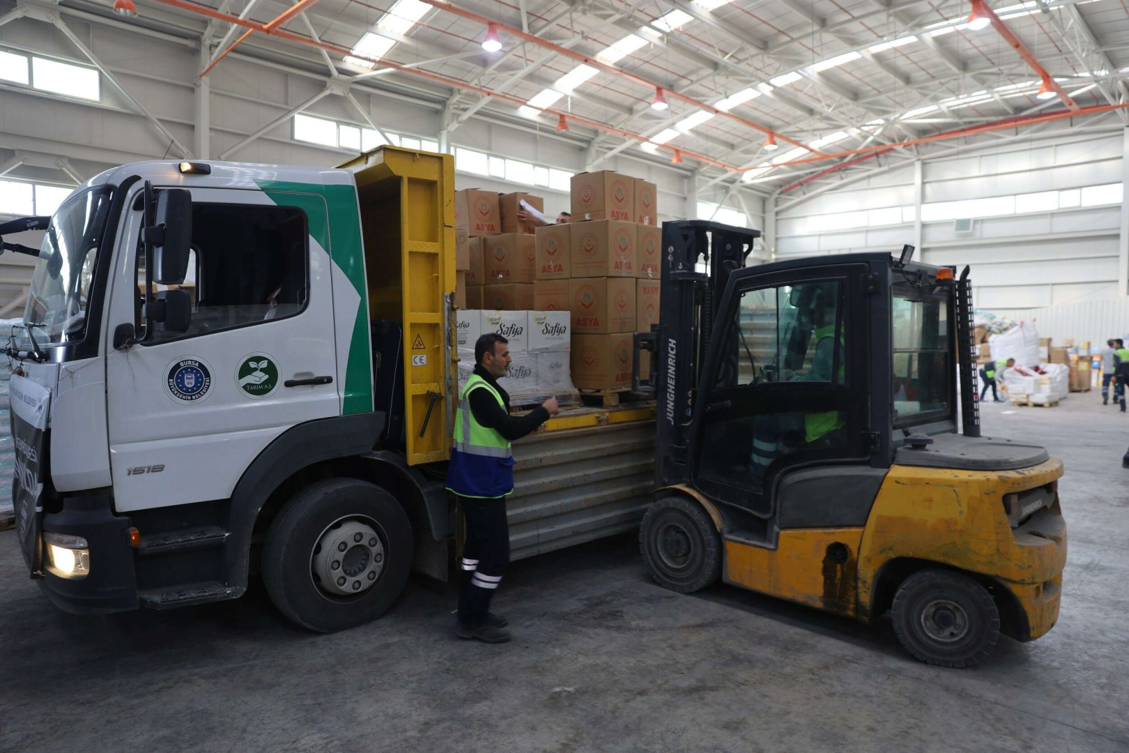 Bugüne kadar 2 bin 243 sevkiyatın yapıldığı merkezde, her gün yüzlerce kamyon ve minibüs yollara düşerek vatandaşların ihtiyaçlarına cevap veriyor.