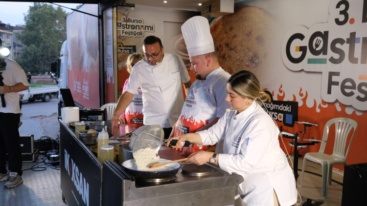 Bursa Büyükşehir Belediyesi tarafından 13-14-15 Eylül tarihlerinde Merinos Parkı’nda düzenlenecek olan 3. Bursa Gastronomi Festivali’nin heyecanı erken başladı. Festival öncesinde Bursa’nın lezzetlerini ilçelerle buluşturmak ve Bursalıları festivale davet etmek adına Büyükşehir Belediyesi tarafından hazırlanan ‘Gastronomi Tırı’ ilçe ziyaretleri gerçekleştiriyor. Her gün farklı bir ilçede tanıtım ve davet yapan Gastronomi Tırı, Çarşamba günü İnegöl’e geldi.