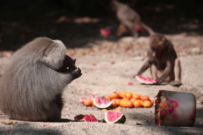 Bursa Hayvanat Bahçesi sakinleri buzlu meyvelerle serinliyor
