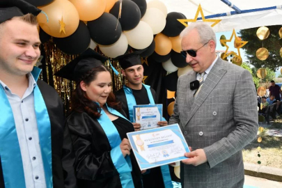 Mustafakemalpaşa ilçesinde İbn-i Sina Özel Eğitim Meslek Okulu öğrencileri eğitimlerini tamamlayarak mezun olmanın gururunu yaşarken, aileleri ve öğretmenleri de bu coşkuya eşlik etti.