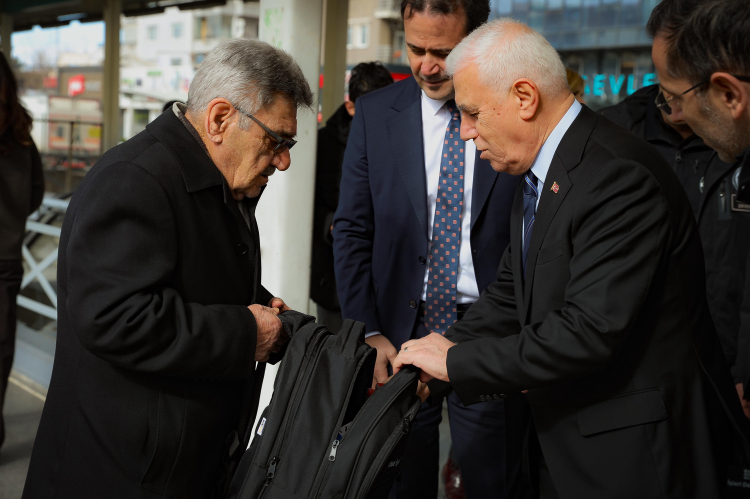 Bursa Büyükşehir Belediye Başkanı Mustafa Bozbey, daha sonra Beşeveler BursaRay İstasyonu’ndan metroya binerek vatandaşlarla birlikte Şehreküstü İstasyonu’na kadar yolculuk yaptı. Başkan Mustafa Bozbey tarafından vatandaşlara AKOM tarafından hazırlanan ve içinde ilk yardım kiti, battaniye, radyo, el feneri, diş fırçası, yağmurluk, düdük ve çöp torbası bulunan afet ve acil durum çantaları dağıtıldı. Yolculuk boyunca Bursalılarla afet konusunda sohbet eden Başkan Mustafa Bozbey, afetlere hazırlıklı olmanın önemine vurgu yaptı.